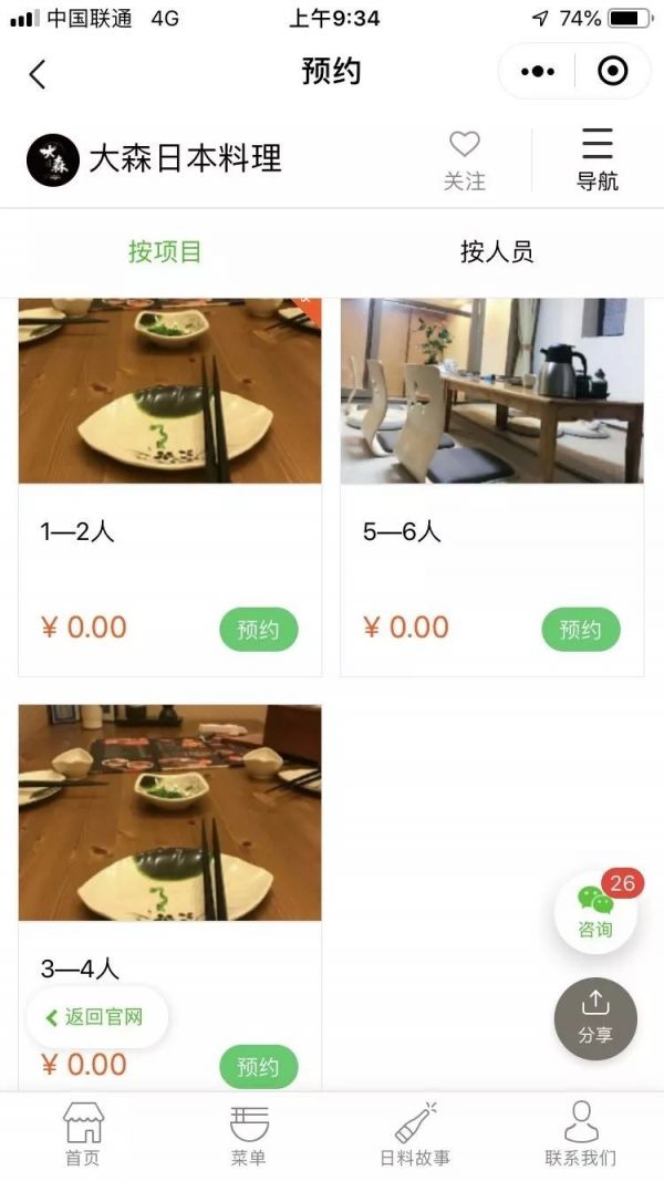 由于是私房料理,大森日料坐落在一栋公寓楼内,没有显著的门脸,这就导致最初客流量受限。好在,大森遇到了小名片+小官网,帮他完美的解决了问题。