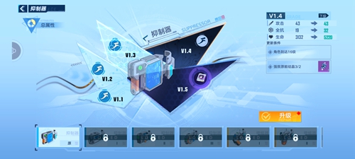 3.同时升级抑制器还需要玩家达到一定的等级。到后期抑制器的属性也能增加很多,所以玩家前期也要多收集强效原能结晶。