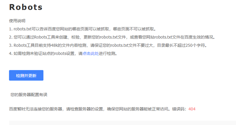 4.已经在根目录上传了sitemap,robots。但是robots为什么在百度后台检测不出来?