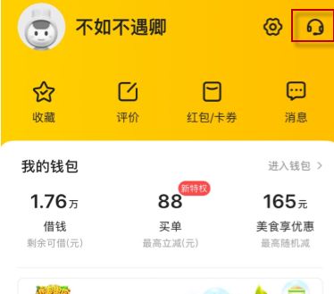 打开美团点击我的,进入个人页面,选择右上角的耳机图标