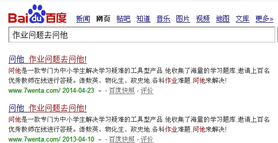 百度给我品牌词双结果展示:百度搜索 “问他”,我首页有展示2次,请问这是bug还是我被特殊了?如下图: