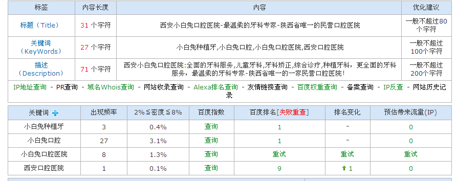 [导读]:这是别的网站www点02981566699点com,关键词密度也不好,怎么排名是靠前的呢? 关键词密度,站内锚文本的设置,外链的质量,多少以及内容的优劣都是影响网站目标关键词的因素...