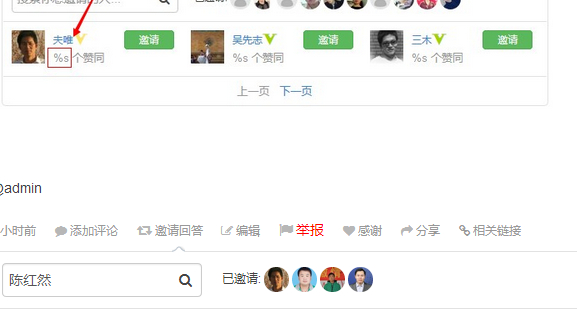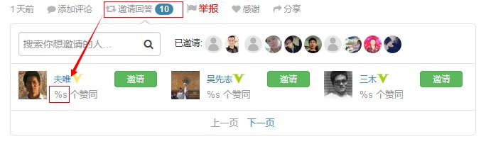 [导读]:如下:这个 %s 个回复是什么意思? 我邀请了以下几个人,没有发现类似情况 ### 我觉得不像是wecenter的BUG,应该是搜外问答代码的问题。...