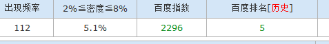 网站这个主关键词在首页出现112词(出现频率高),关键词密度,是个资讯站,四个字,指数2296。