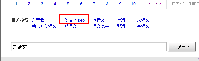 猜想:之所以出现刘清文 seo 而不是刘清文 教育 这样的相关搜索,应该是seo与刘清文更相关,且该页面seo才是主题,教育只是出现一两次的文字(虽然刘清文 教育 的搜索结果多)。