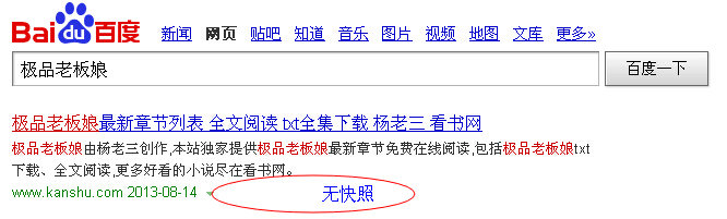 1、百度阿拉丁合作,百度开放平台资源申请并无-文学类(小说站),但是百度搜索结果却显示阿拉丁模式,如图1“起点中文网”-无快照: