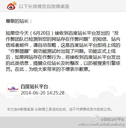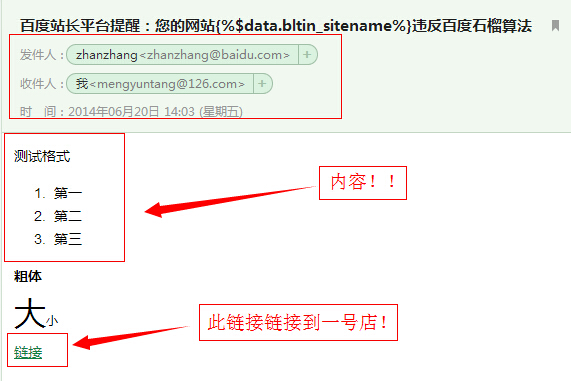 [导读]:刚收到通知,包括手机和邮箱,手机短信信息很简单,就这么一句话,下面是邮件内容,表示很不解,如图: 放心吧,我也收到了,只是百度做个测试。 ### 没有邮件。站长工具...