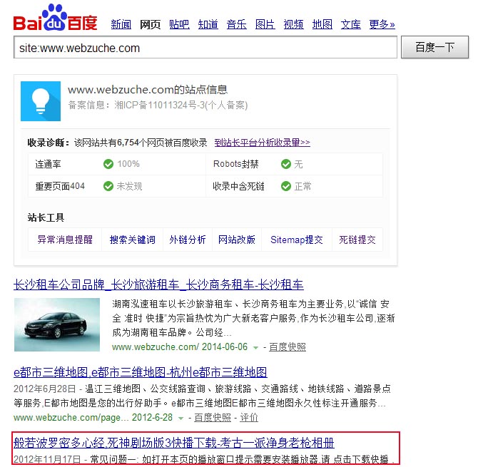 [导读]:site:www点webzuche点com(租车网) 百度快照有些乱七八糟的标题,请各位朋友分析一下,怎么最快解决这个问题! 这应该是老早就被种繁殖了吧... 清马吧。。。...