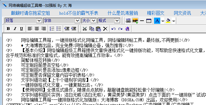 每天对网站里的文章进行更新时,从别人网站复制过来的内容都会有这样、那样的格式问题,这就需要我们对文章进行格式化处理,不知道大家都用什么编辑软件?