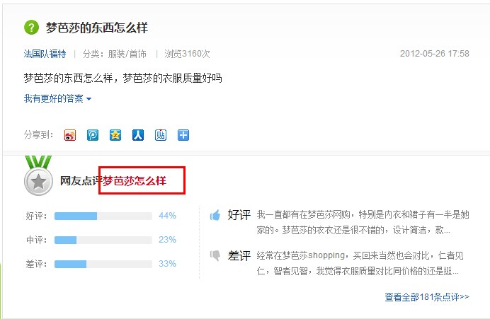- 触发词:网站名怎么样(梦芭莎怎么样),网站名好不好(梦芭莎好不好),其它的词汇暂时没去分析,