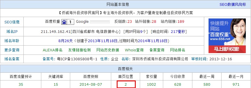 ###这表示首页降权了,这里的“2” 表示首页的位置在第二位 不在第一位,如图