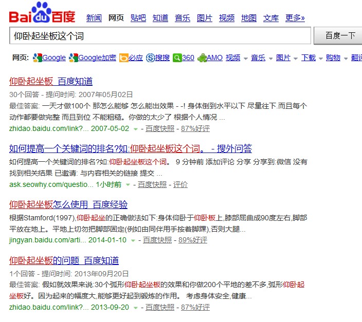 ###"仰卧起坐板这个词",搜索量非常低,你发这一个问题,就直接排在了首页。