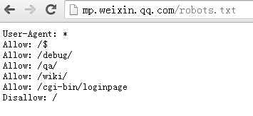 看微信的Robots.txt,是微信先拒绝了所有搜索引擎: