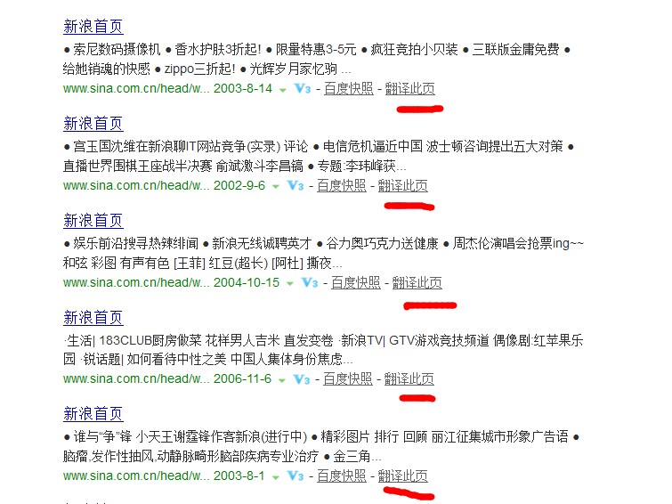 我原来以为就我自己的网站出现了这种问题,结果发现所有的网站都有,新浪,SEOwhy。百度搞什么?中英文都分不清了?如果谁回帖说自己的网站就没有,请把你的域名给我,我10秒内就能帮你找到。