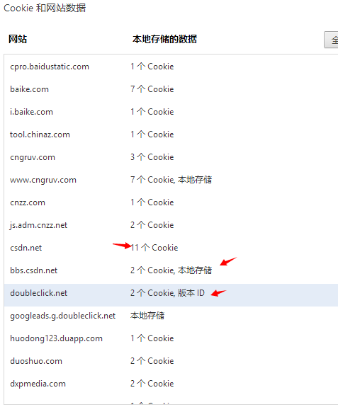 cookie和网站数据的详情如何看,那几个数据代表什么意思