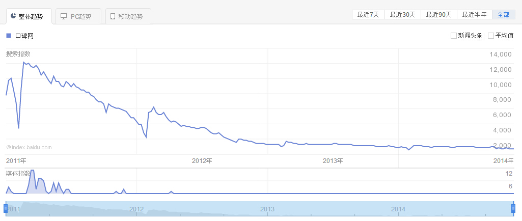 对于子站点这么多的一个网站,这些流量不算很好了,再者,你看站长工具里面的关键词排名,都是他的品牌名称,即口碑网,地名+口碑网,其他的几乎没有排名,主要还是他的品牌词起到的作用,和淘宝一个道理。