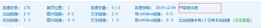 ###我的一个站也是快照回到了2014-11-21日,并且关键词全掉了,这个可能是我网站本身的问题,但是今天在查询友情链接的时候,发现PR获取失败,查了好几个站都是这样