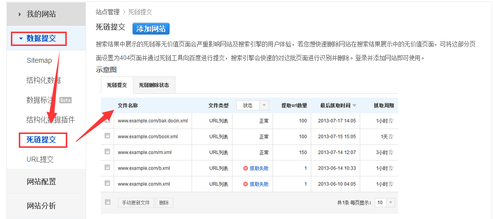 5、在百度站长平台提交死链文档。