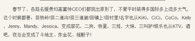 还有一些人,本来就是农村人,还要装作城里人,张口闭口也是“你们农村人xxxx”,把自己起个外国鸟名字,显得自己多高大尚一般,抱歉,城里人不承认你,农村人也不会承认你的。