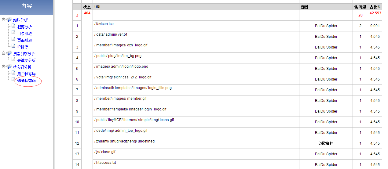 代表蜘蛛通过抓取页面,访问到这些链接,但是由于页面不存在(删除),返回状态吗404;这样是正常的。