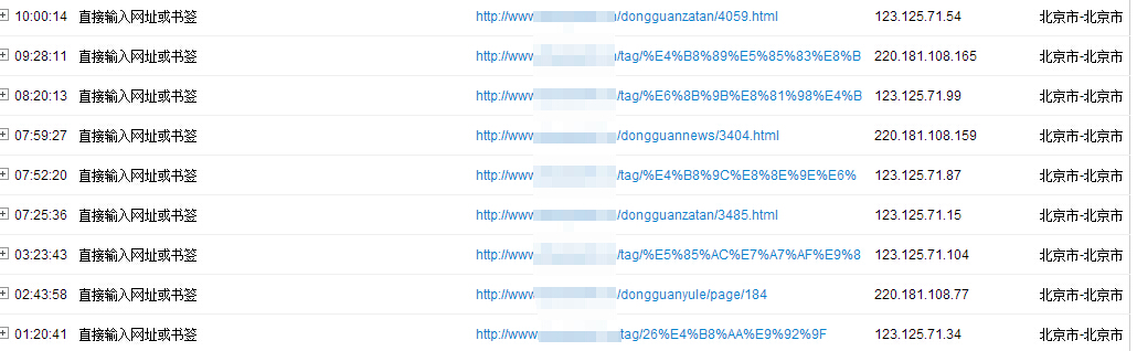 [导读]:从今年1月份开始吧,网站基本上每天都会有七八个北京的IP来访问网站,都是在凌晨一点到六点之间进行访问,而且都是直接输入网站进行访问的!我就想知道这是什么情况啊,...