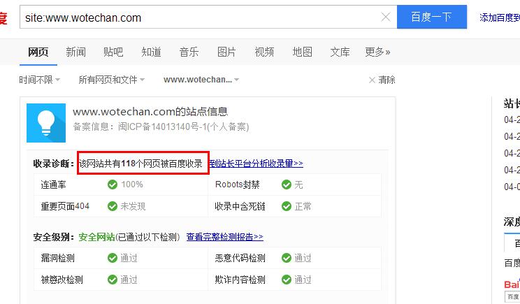 大家都知道:查看网站收录用site指令,或者在百度站长平台里面查看。但这里的收录量就是有效收录吗?我指的有效收录是百度真正收录,表现是复制整个标题能够在搜索引擎里面展现,而不是复制链接搜索框里有显示收录。