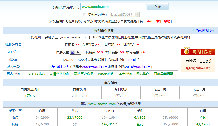 对过百度外链分析(有兴趣的话看看):淘鞋和其他两个网站正规性方面也差了些