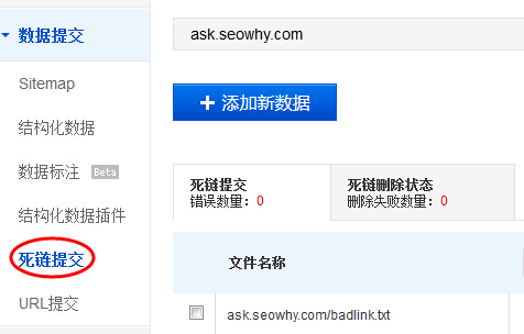 2、做一个badlink.txt(如:ask.seowhy.com/badlink.txt),提交到百度站长工具