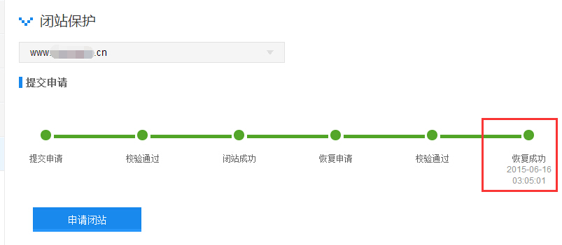 由于我网站由虚拟主机搬迁至服务器,网站要进行备案接入,就申请了闭站保护,之前也申请过一次,恢复挺快,这次就申请了