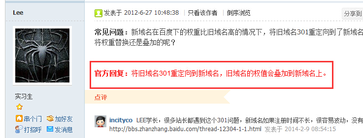 可以传递权重,但是没法达到1+1等于2的结果。这个你可以在百度站长平台上查到,上图lee的回答在后面又出现了新的文章改变了说法。所以个人感觉最多传递原权重的。因为近期在做几个站点的301测试发现,传递了,但是排名下降。