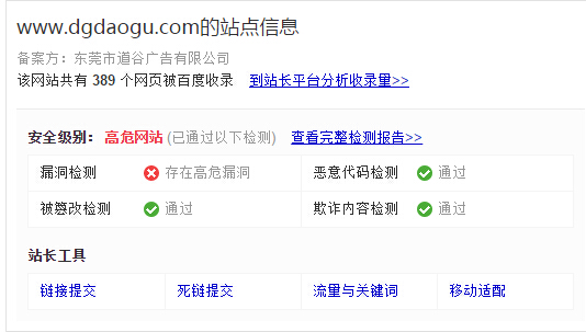 [导读]:site网站 百度显示高危网站,有重大漏洞,但点查看完整检测报告,显示有这些漏洞,怎么解决?是将这些文件删了(但目录没找到这些文件) 还是将这些链接提交死链? 修复...