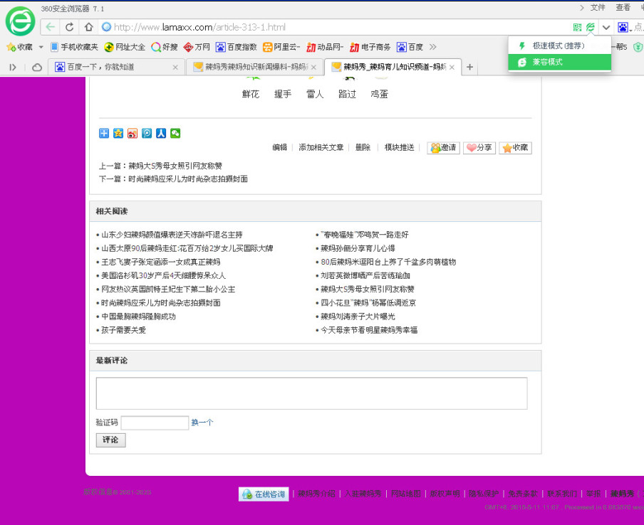 大家来看看360浏览器的不正常行为,360极速模式下莫名给我的网站加了广告,而兼容模式下就 没有广告?