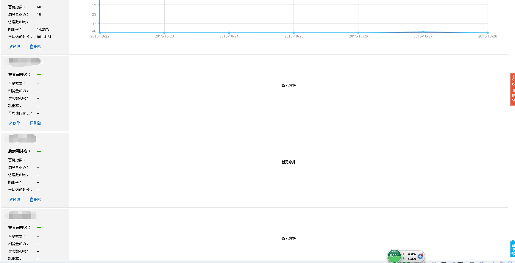 百度统计验证有几天了为什么有的关键词仍然没有排名的具体数 作者:怎样注册博客 • 时间:2020-03-08 • 问答 • 来源:可以发外链的论坛 • 阅读 [导读]:在等几天,再去看下是否有数据。 没有的话检查下是否代码安装正确。... 在等几天,再去看下是否有数据。 没有的话检查下是否代码安装正确。 本文来自投稿,不代表微盟圈立场,如若转载,请注明出处:https://www.vm7.com/a/ask/38508.html