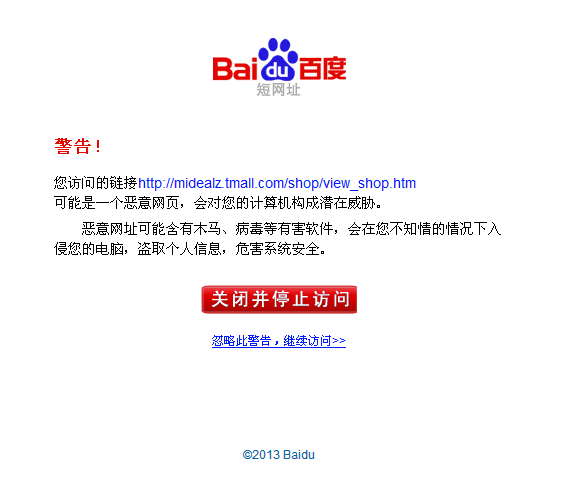 ###我觉得最重要的原因是,天猫是一个购物网站,涉及到资金及金钱方面的。而你又不是加的首页。天猫网址本身是没有问题的,也和被百度联盟设置为不安全链接没关系。百度做的,只是会善意的提醒访客,但是他的描述有问题。百度不知道你加的链接是否存在欺骗等行为,所以会适当的提醒访客。