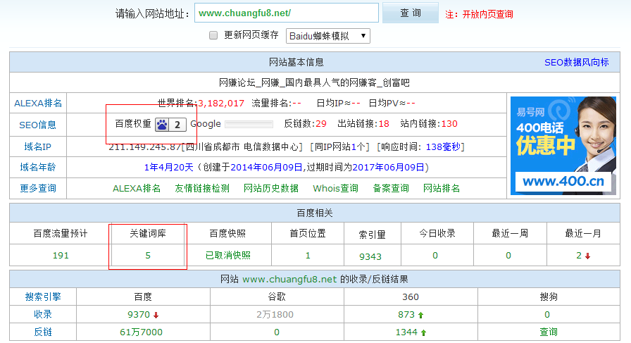 下面是带www的站长工具查询的数据