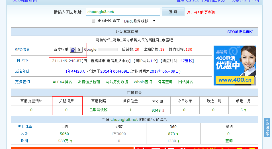 下面是我不带www的域名查询数据