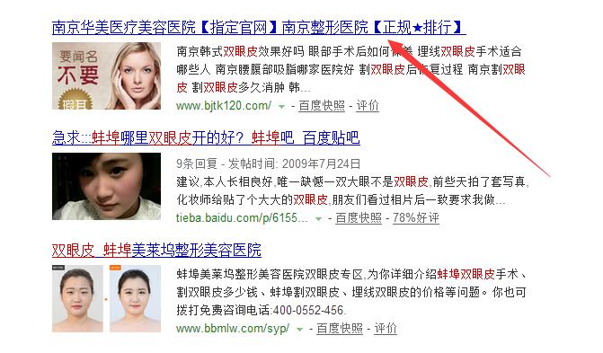 [导读]:标题、关键词、描述都没有提到蚌埠双眼皮,但是它就是在上面,这是为什么,我想的很久就是不知道原因,求大神们解释一下谢谢! 截图里面的快照里面的“双眼皮”这个关...