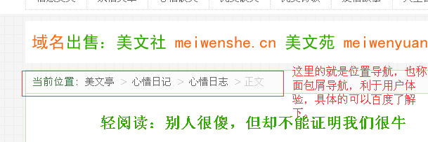 [导读]:什么是面包屑 ? 什么是次导航 ? 面包屑和次导航有什么作用 ? 注意:这篇文章主要用来做关键词排名用,回答师兄们最好有图片说明,我们给夫唯老师做点贡献,谢谢! 关...