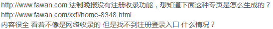 谁比较了解法制晚报?给解释一下几个问题呗 作者:不负韶华只争朝夕 • 时间:2020-03-08 • 问答 • 来源:长尾关键词挖掘 • 阅读 [导读]:这种是别人购买他网站频道,别人通过一定的手段来维护的,你可以了解下G3云推广,就是类似这样的。一般购买的都是高权重的网站,做网络营销的用的比较多。... 这种是别人购买他网站频道,别人通过一定的手段来维护的,你可以了解下G3云推广,就是类似这样的。一般购买的都是高权重的网站,做网络营销的用的比较多。 本文来自投稿,不代表微盟圈立场,如若转载,请注明出处:https://www.vm7.com/a/ask/40353.html