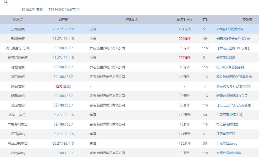 [导读]:一个域名为什么用ping检测查出两个独立IP 这个很正常,不是双不双线的问题,你可以试下京东之类的网站看看,好几十个ip多了去了。 ### 服务器是否是双线服务器的,这种可能...