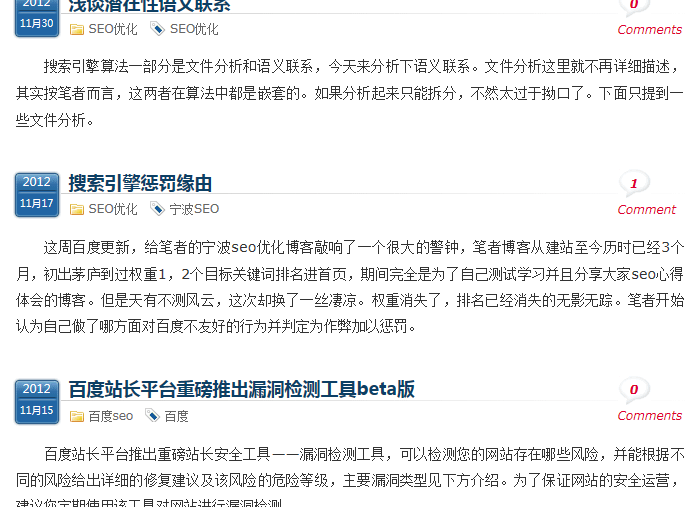 ###陈红然老师讲的很对,但只是一个轮廓,会优先考虑描述标签符不符合用户体验,不符合用户体验只是单纯罗列给搜索引擎看的,搜索引擎会参考页面适合的文字作为描述,我们写描述标签虽然经过一些分析,删选,择优写出来的,但还是给自己和搜索引擎看的,衡量这个描述标签的标准是不是符合用户体验,搜索引擎还是会以周围的信息作为参考,如评论。这点已经被证实,我的博客首页,源代码中地描述前段时间和收录中的描述是一样的。但由于一直没更新,今天去看了下百度快照中的描述出现的是有评论的页面文字。