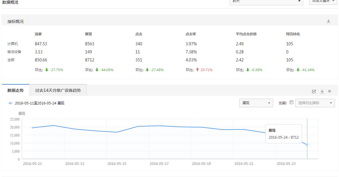 ###我手上的站展现量和点击量也是没有明显变化。百度的确是大坑,点击率、点击量和转化率一直就不是正比关系!!!