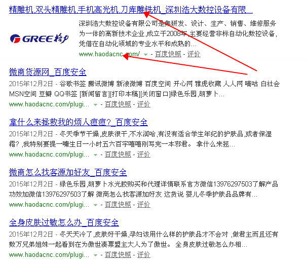 site网址后收录大增,而且日期都是同一天的,但是第一页除了第一条是我的首页,其他都是不相干的网站,这只有一条是公司的信息