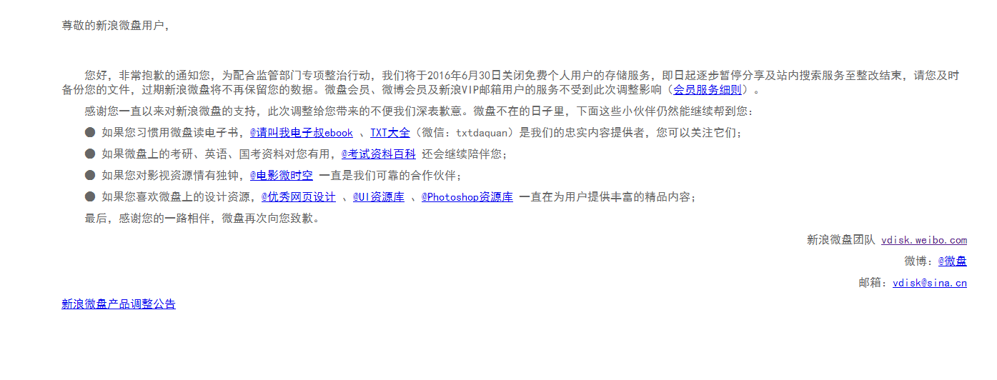 又一家网盘(新浪微盘)宣布关闭 作者:seo接单 • 时间:2020-03-08 • 问答 • 来源:奏鸣工具网址 • 阅读 [导读]:最好的还是天翼云... 最好的还是天翼云 本文来自投稿,不代表微盟圈立场,如若转载,请注明出处:https://www.vm7.com/a/ask/41567.html