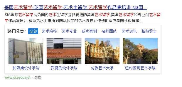 360 搜索排名第一特别展示?今天用360搜了下艺术留学,查看了下竞争对手的网站,发现如图,这怎么做的呢?