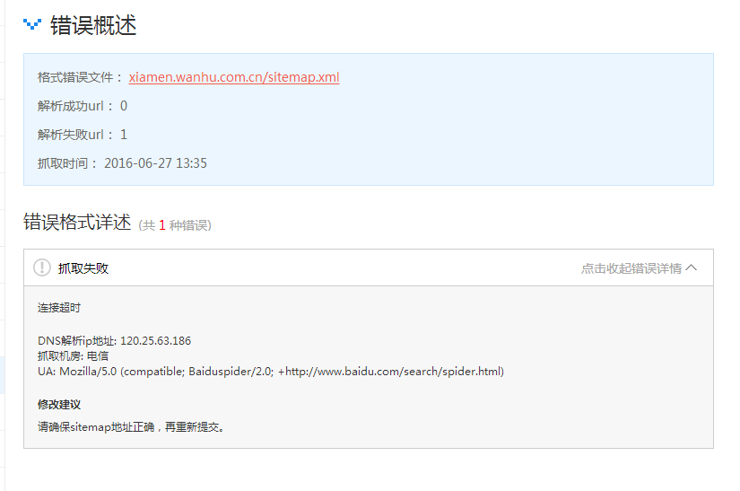 [导读]:我的二级域名提交很多次都出现了连接超时了 直接访问地址又是可以访问的,我提交一级域名的sitemap是没问题的 请问这是什么问题? 基本情况是: 不同的网站 同一个服务器...