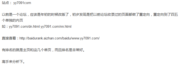 没有什么好分析的,讲有一定权重的301跳转到另一个URL