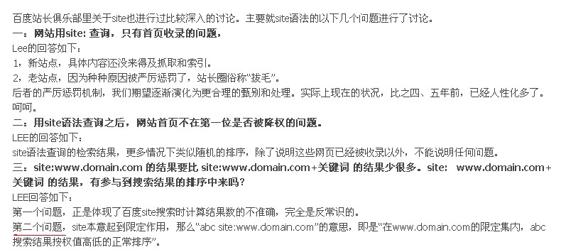 百度lee对site语法的各种回应: