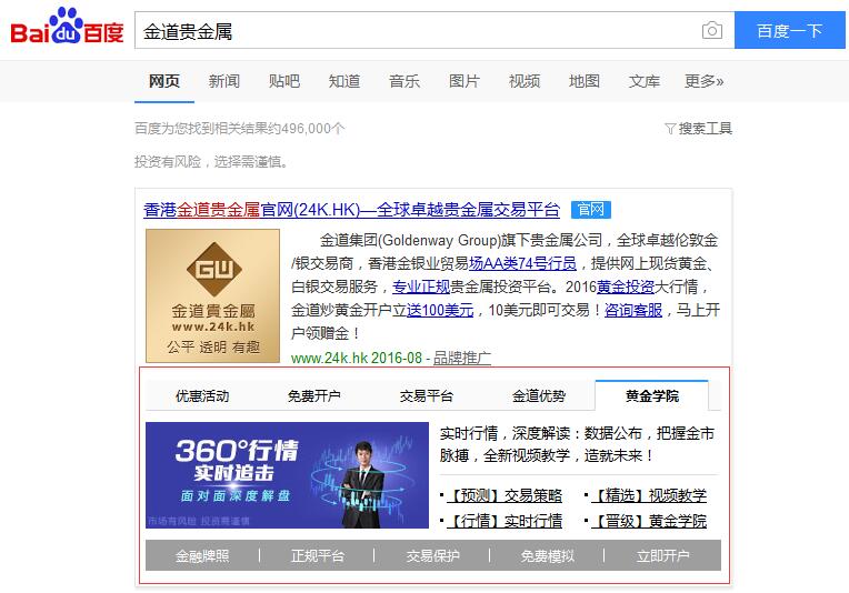 [导读]:大家见过这样的搜索页吗?是怎么做到的? 看网址后面带有一个“品牌推广”的标示。这个具体的收费跟行业有关,你可以直接找凤巢帐号后台的专属百度客服联系问一下 ###...