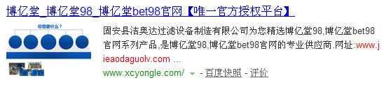 我在百度输入我的网址搜索,发现有个叫博亿堂的网页描述里居然有我的网址,还有我的企业名称,已经很长时间了,而且弄得我的网站很长时间了一点排名都没有,请高手